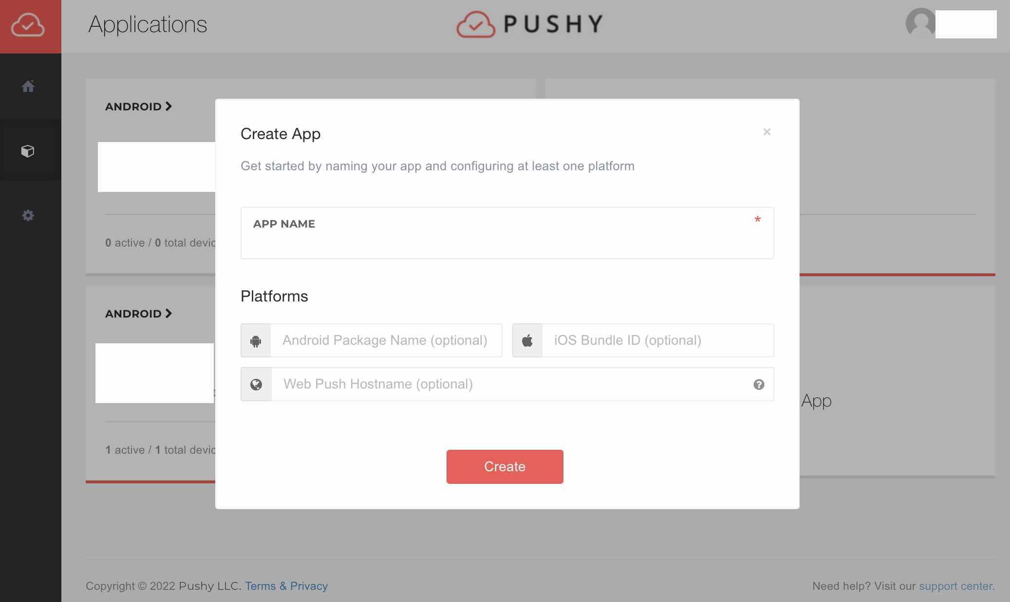 1. Pushy.me 계정 생성 및 애플리케이션 등록