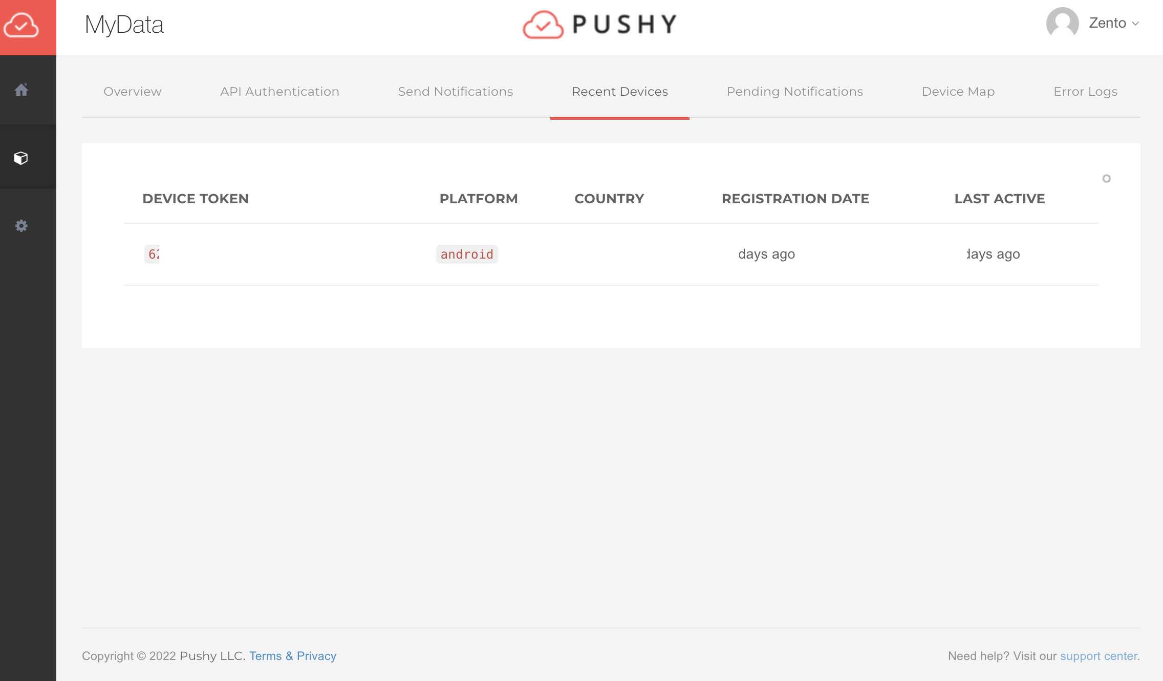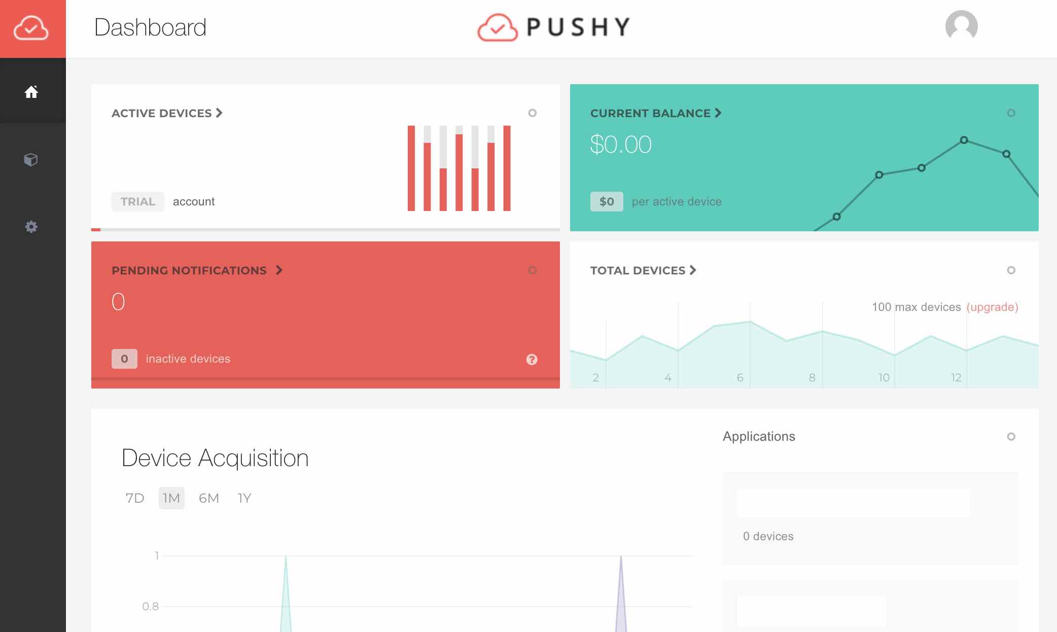 빌드를 하고 실행이 되었다면 pushy.me 에 등록이 되었을 것이다.