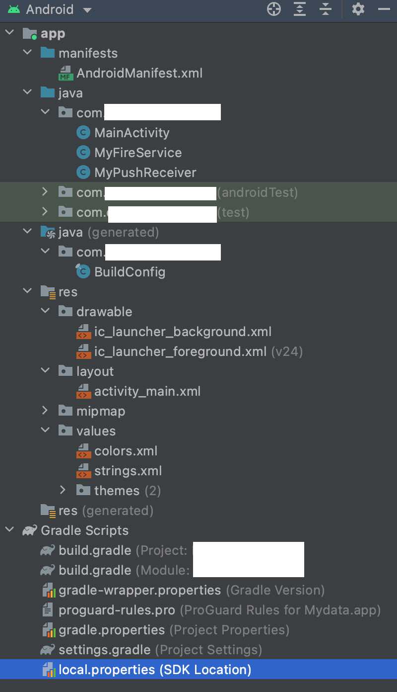 여기서 수정해야될 부분은 AndroidManifest.xml, MainActivity.java , MyFireService.java , MyPushReceiver.java ,